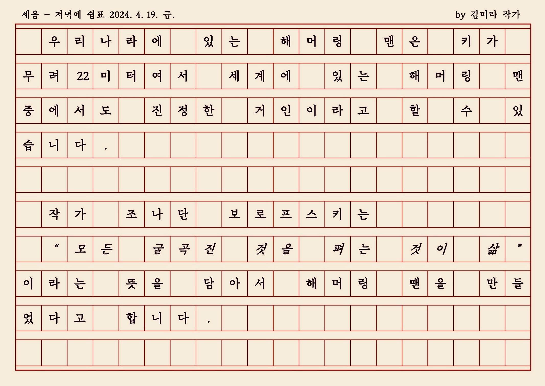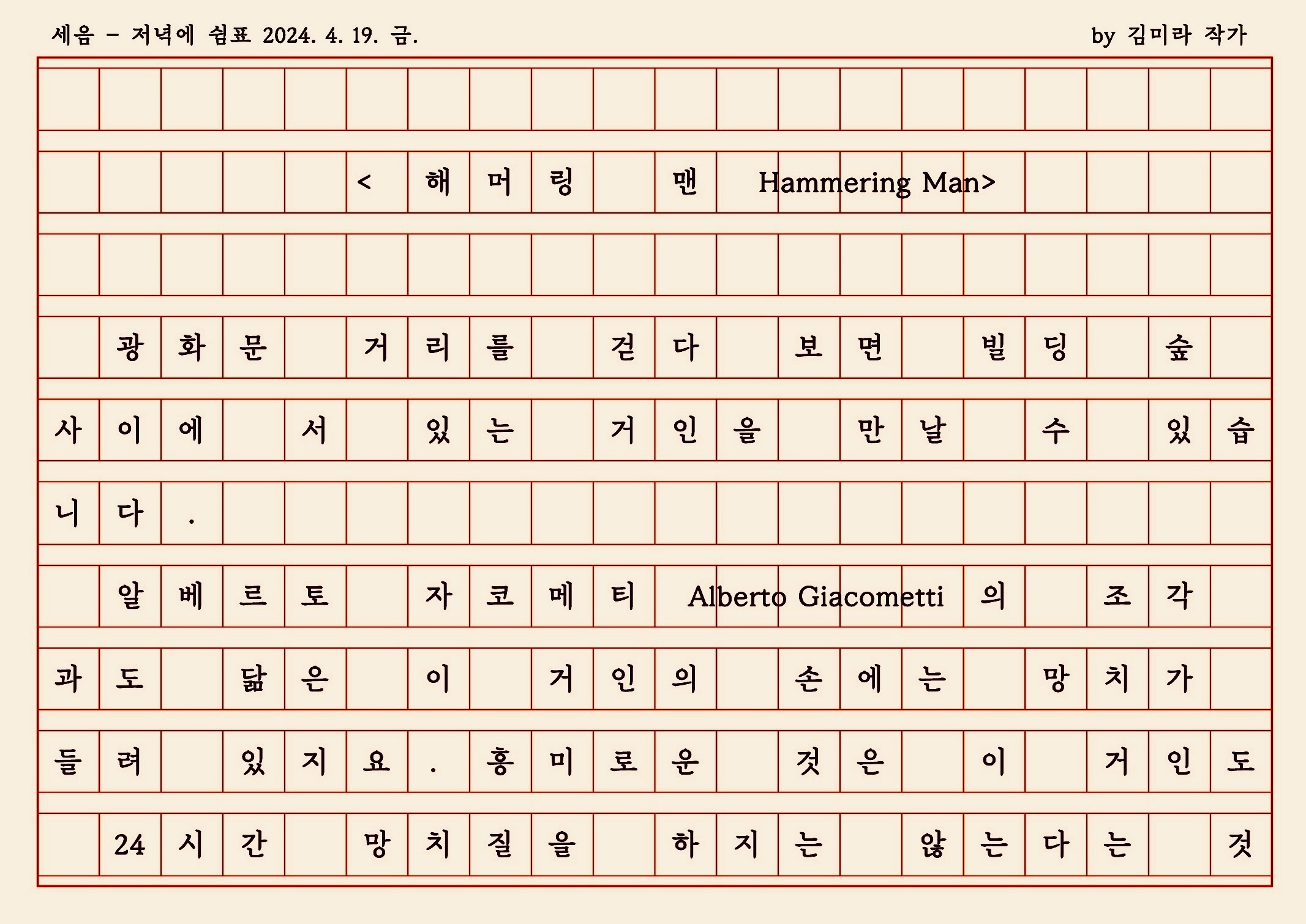 그렇게 울퉁불퉁한 삶을 망치로 성실하게 두들기다 보면.