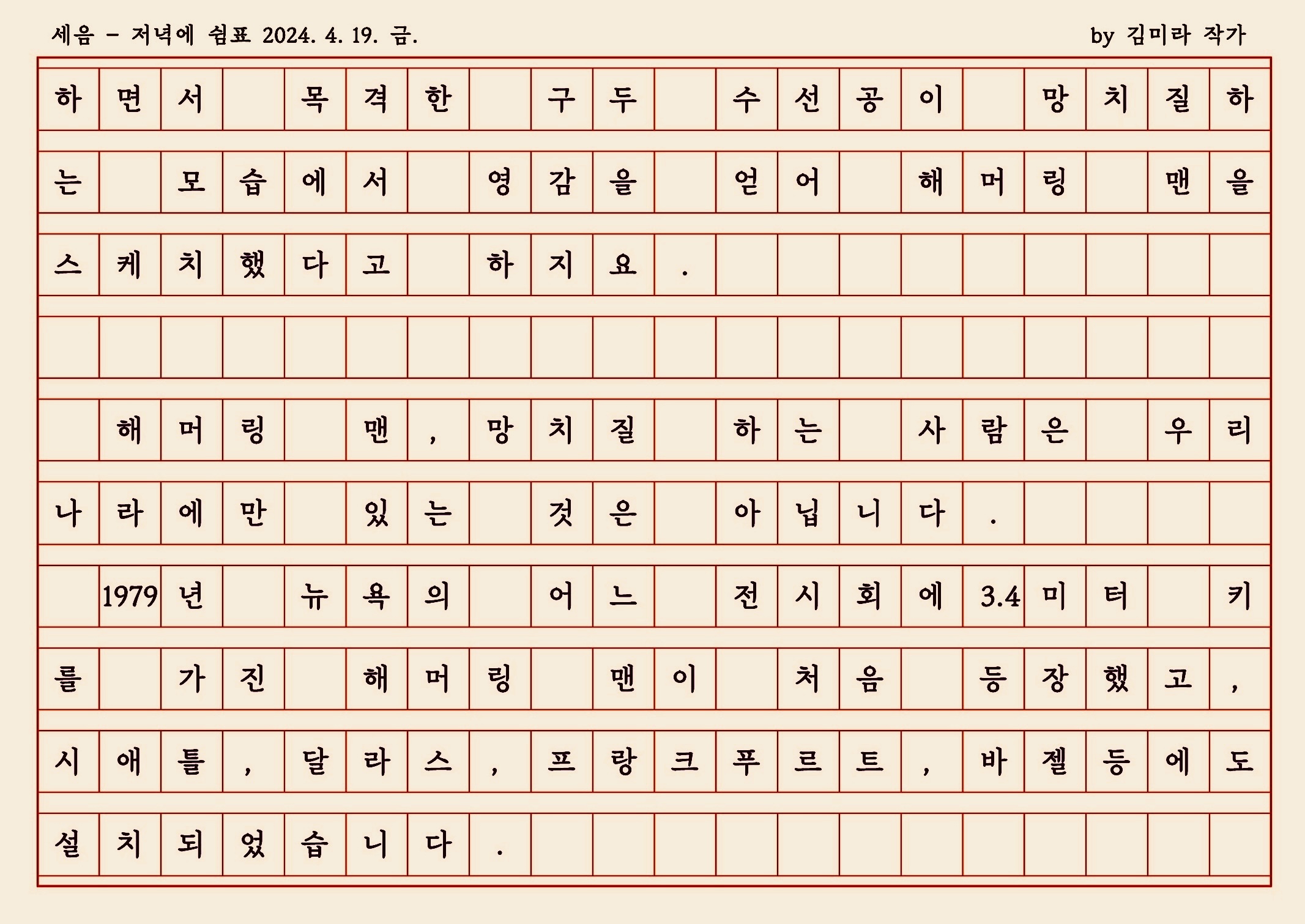 "헤머링맨을 보는 사람들도 아마 그럴 겁니다.