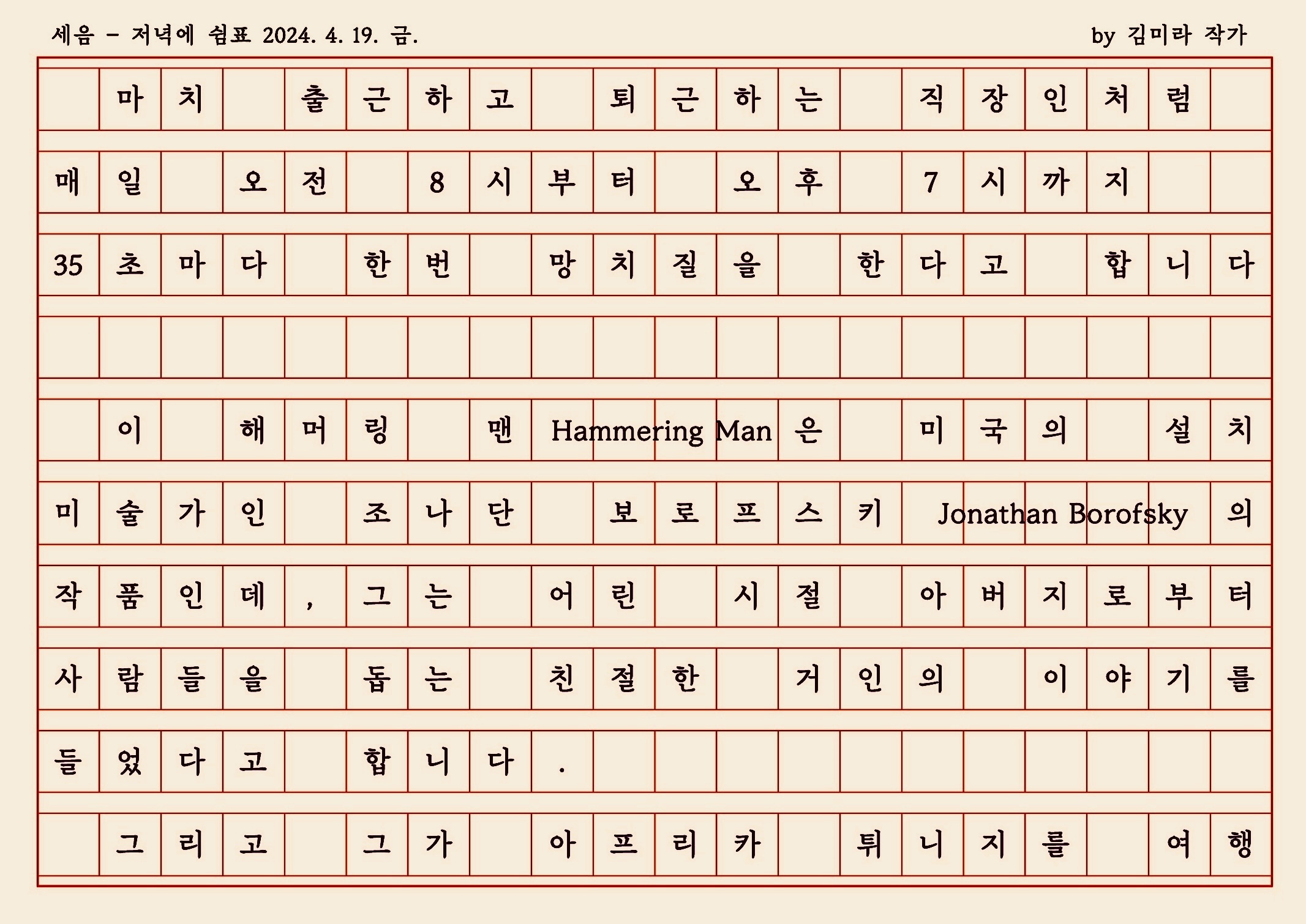 때론 분노가 망치질이 되었던 때도 있었을 겁니다.
