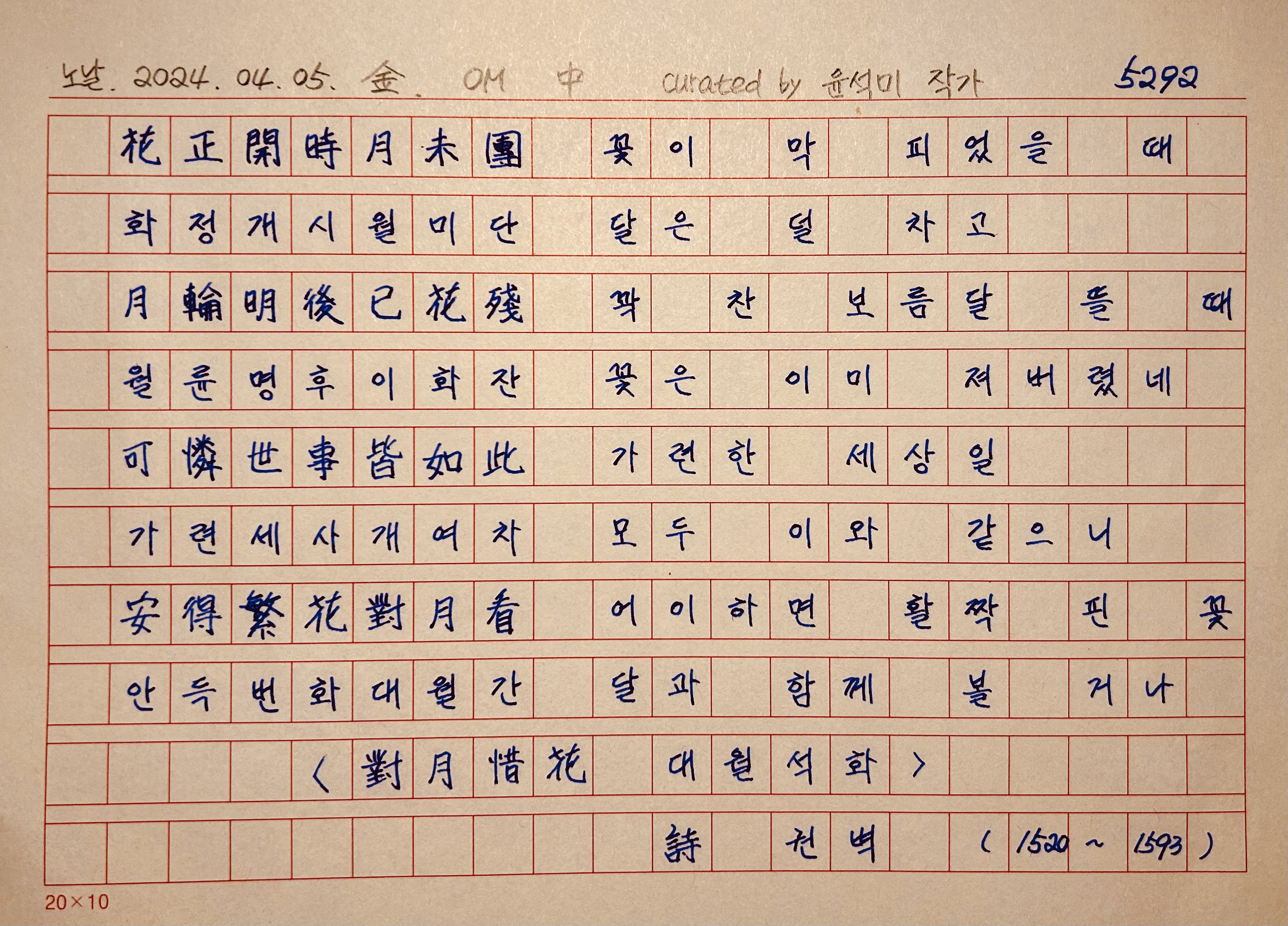 달과 꽃을 함께 보려는 건 그때도 욕심이고 지금도 욕심이란 뜻이 아닐까. 그러니 권벽은 시로 알려준 거죠.
