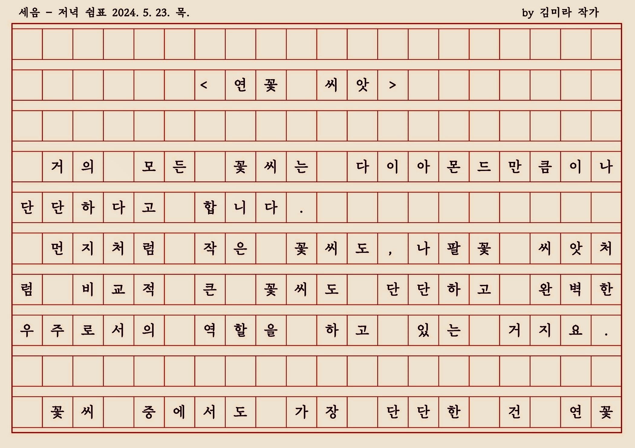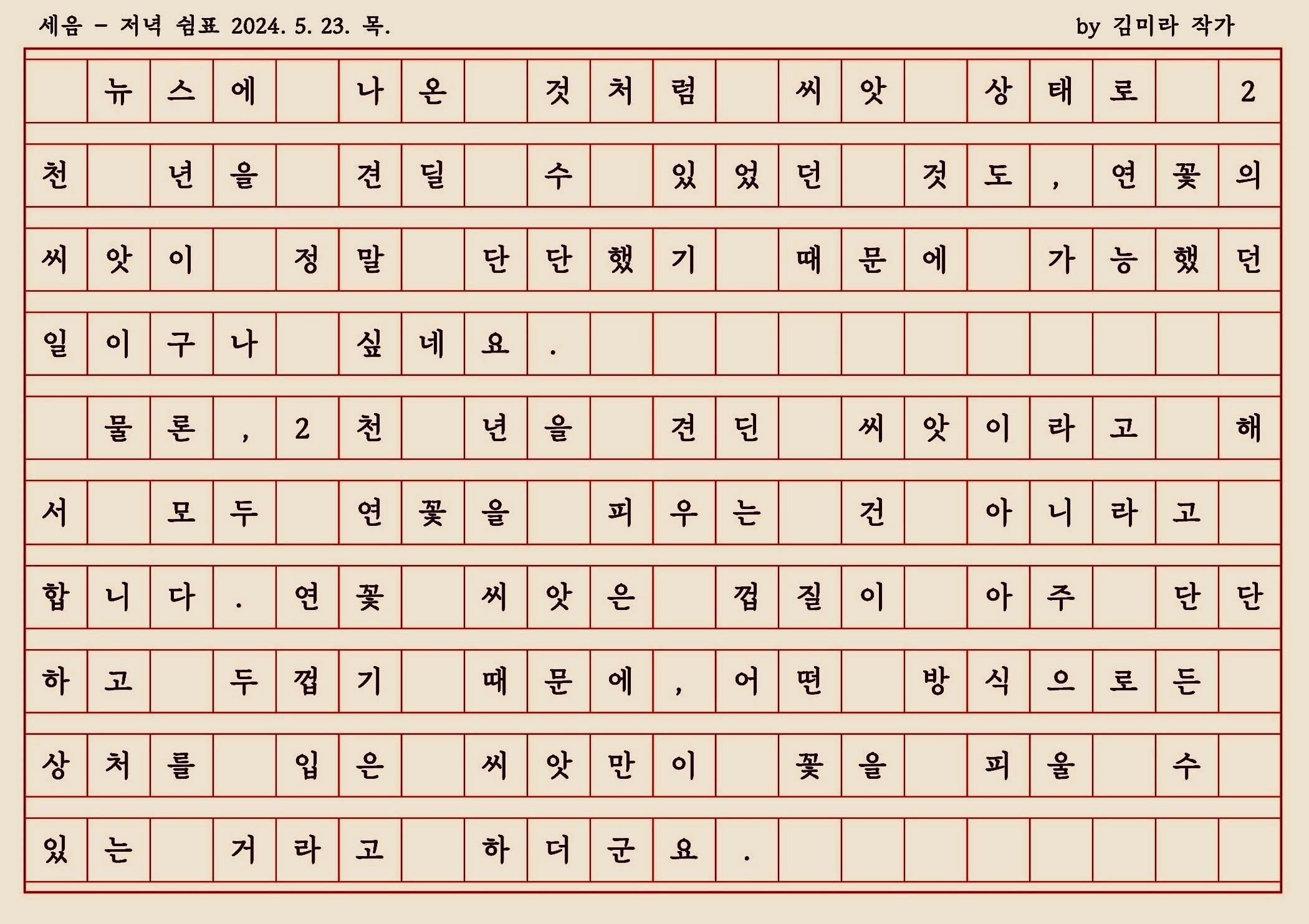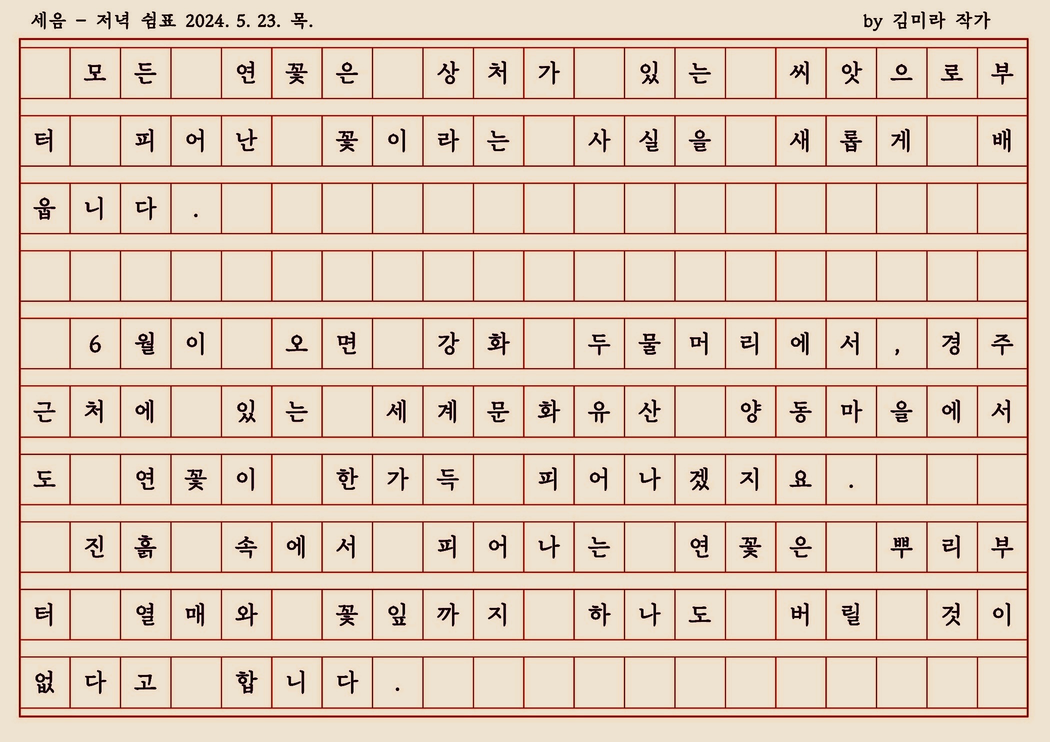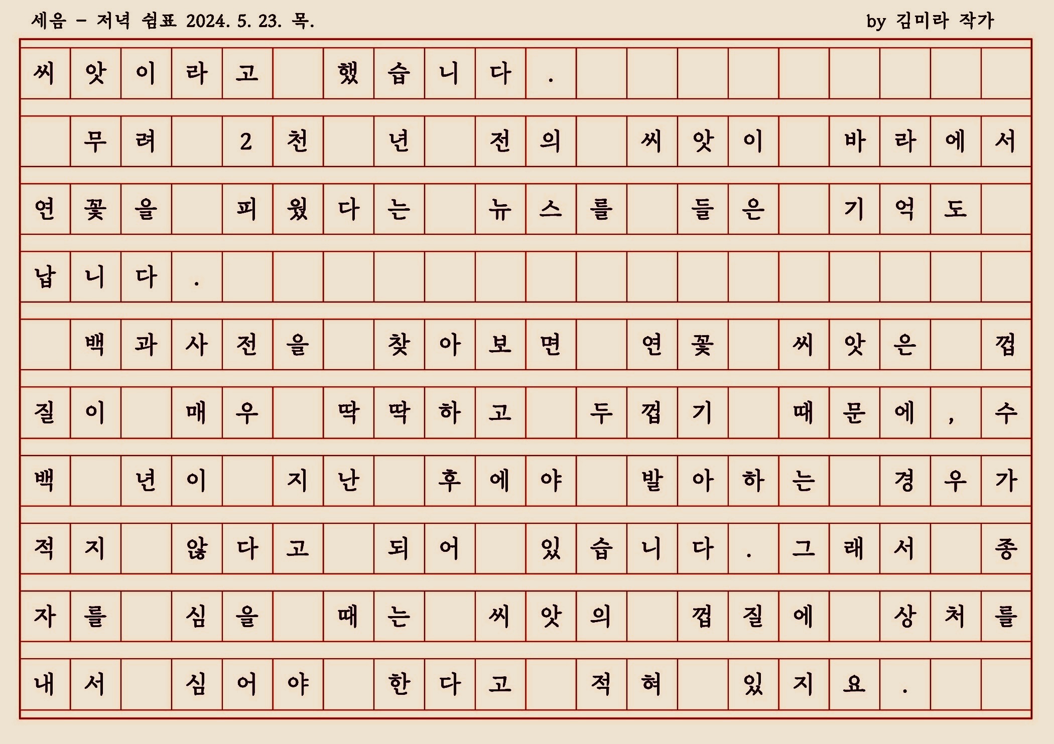 상처가 있어야 연꽃을 피울 수 있다는 연꽃 씨앗 이야기를 나누며 생각해 봅니다."