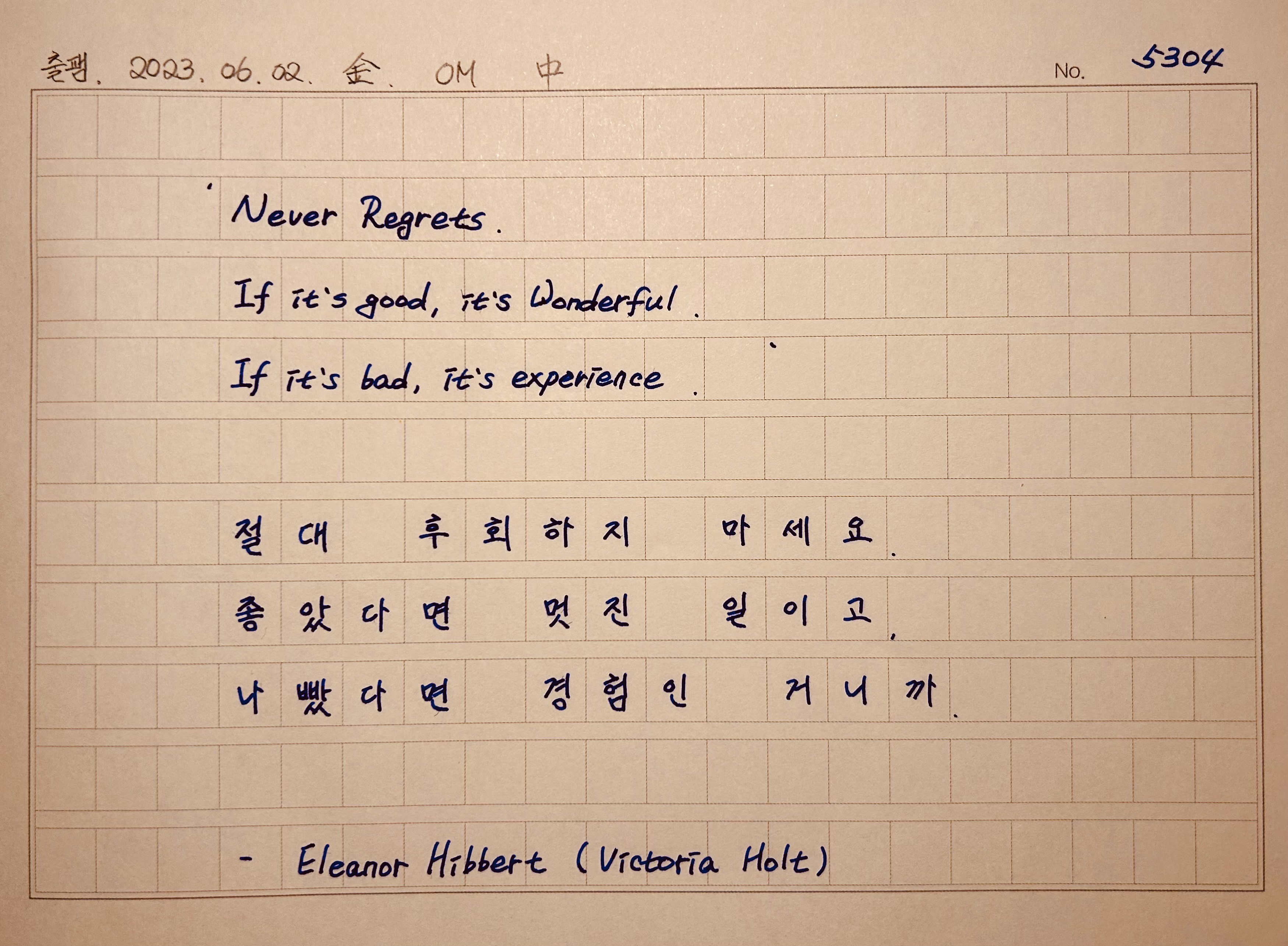 물론 이 말처럼 절대로 후회하지 않고 사는 건 힘든 일입니다.