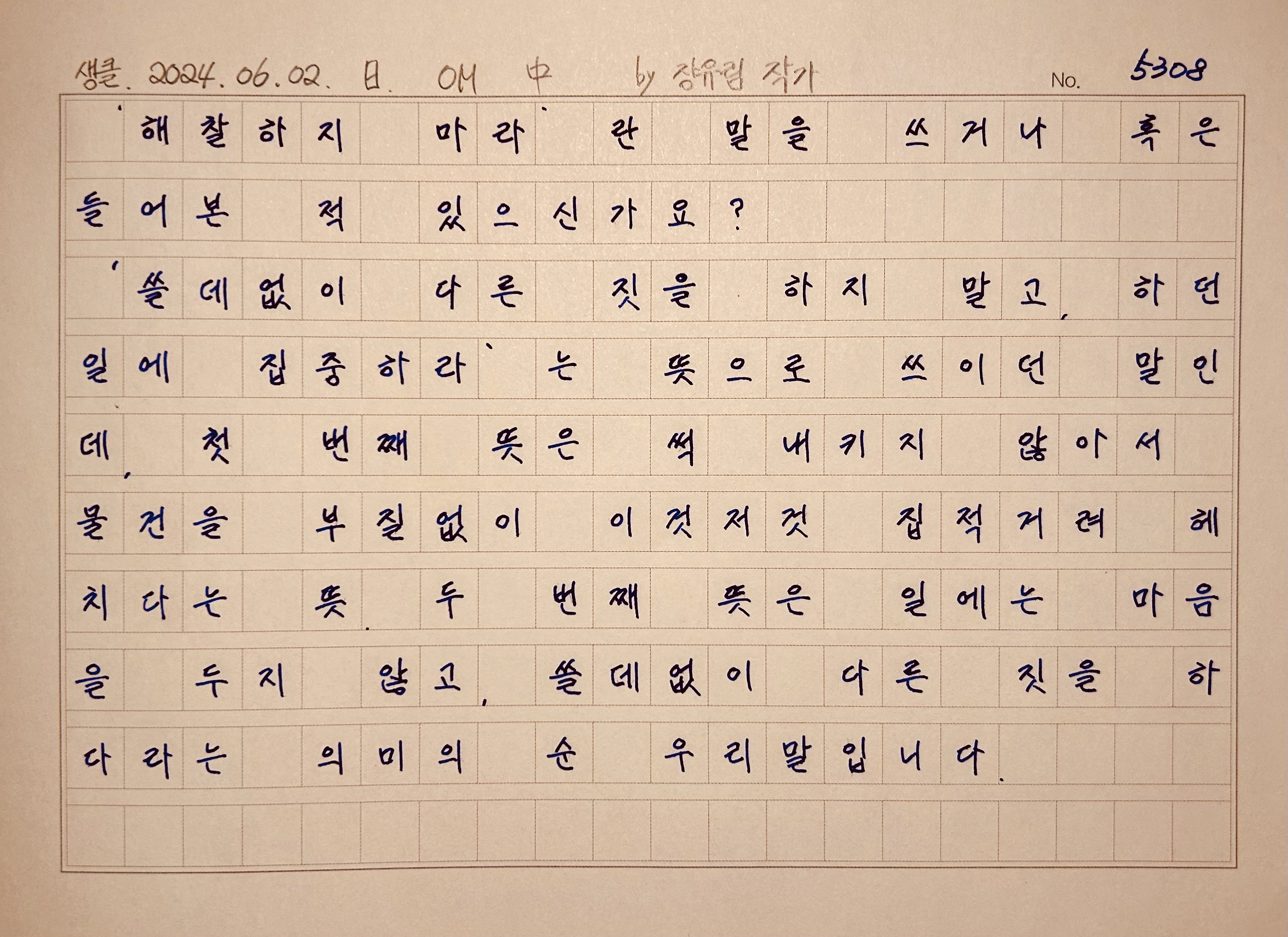 | 자세하고 정확하게 쓰기 (0) | 2024.05.26 |
