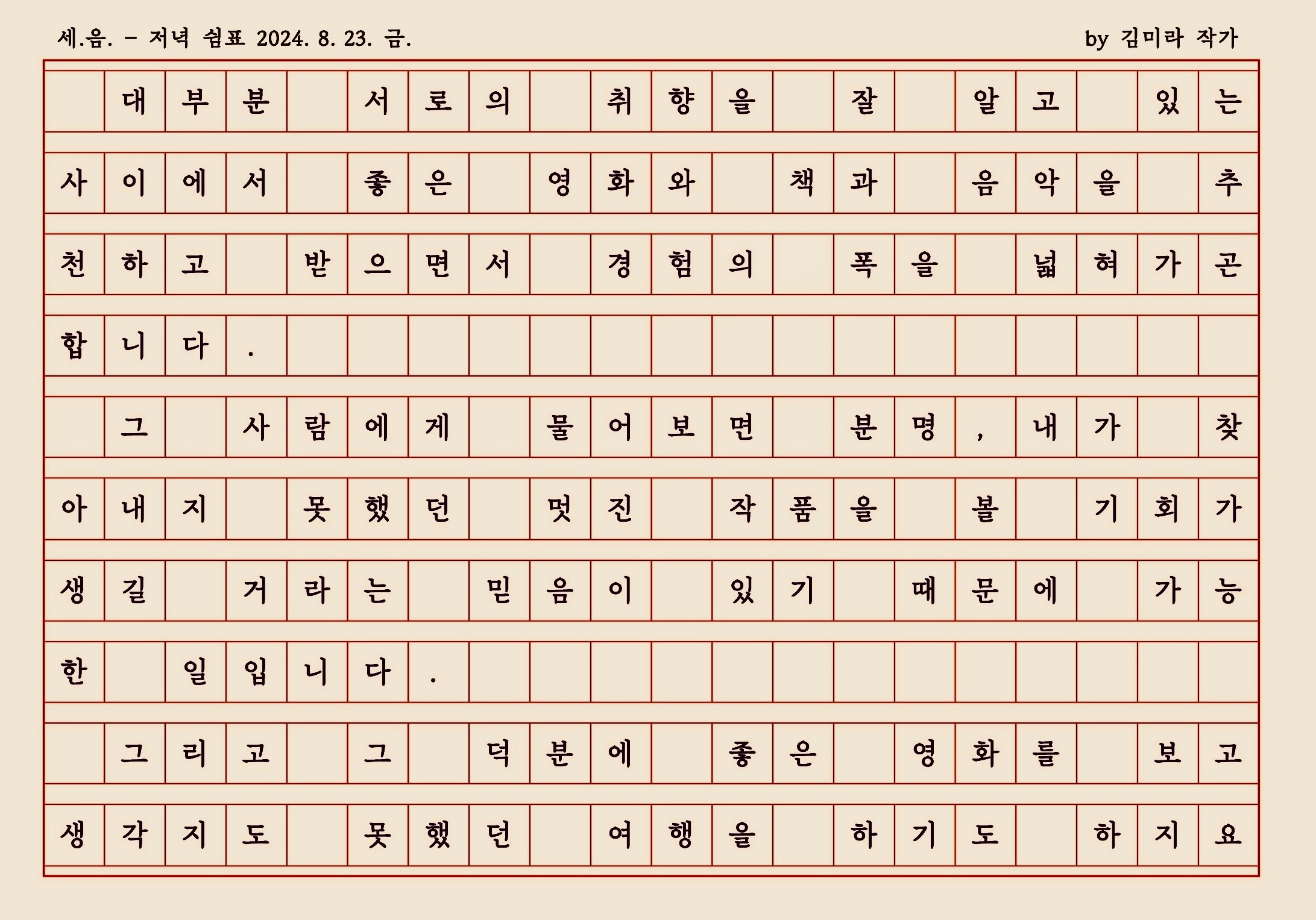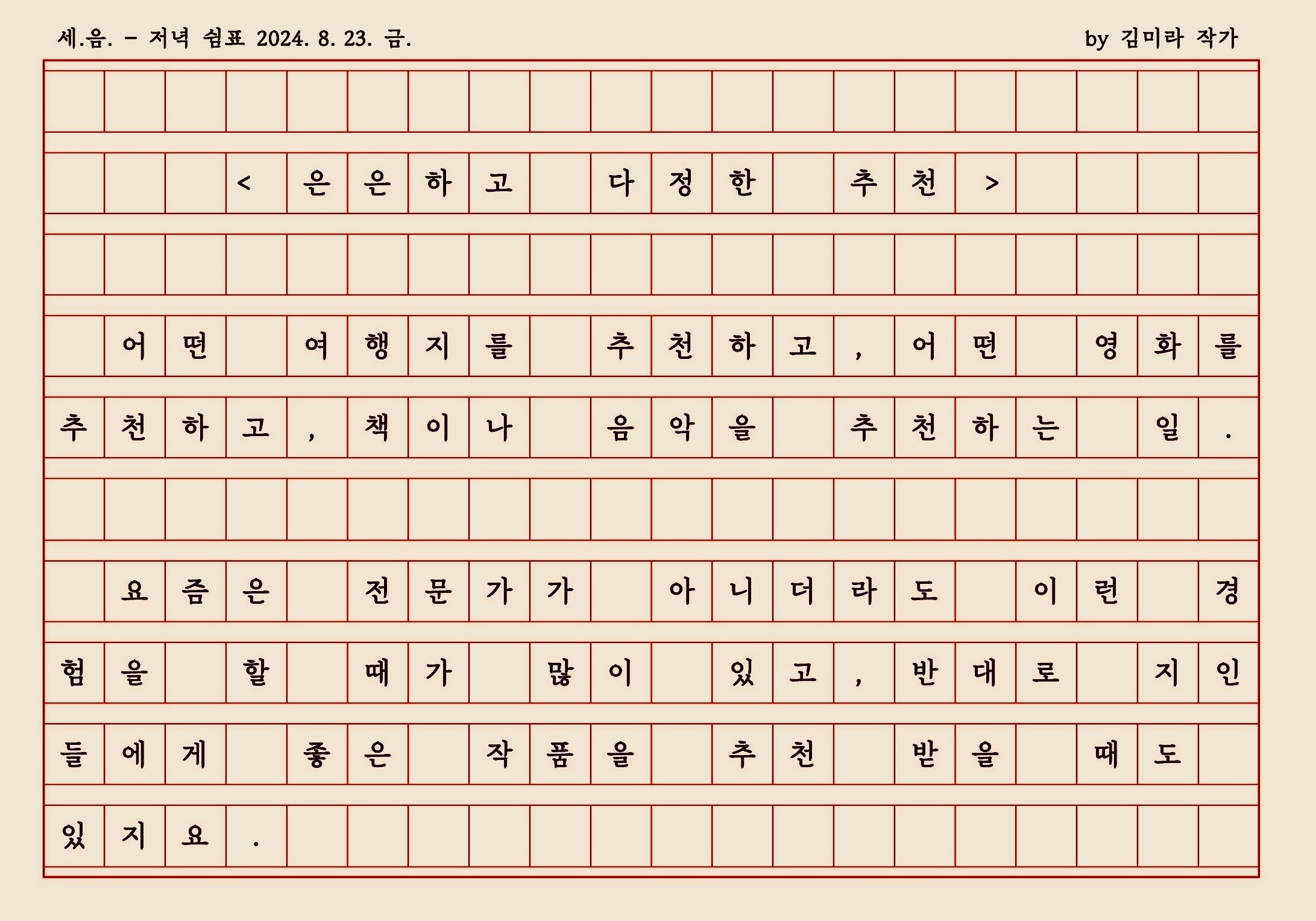 이렇게 은은하고 다정한 추천이 우리 마음을 꽉 채울 때가 있습니다.