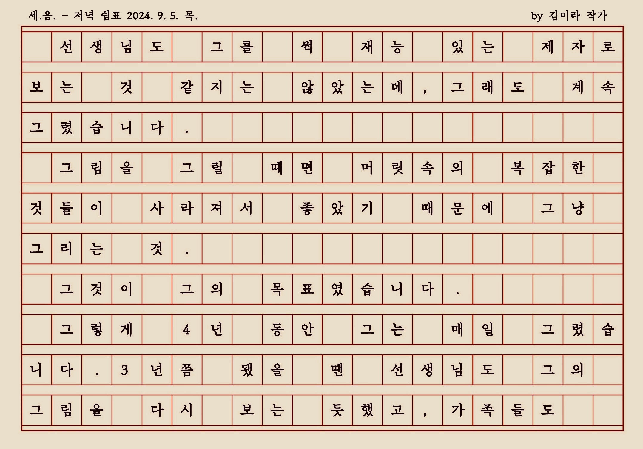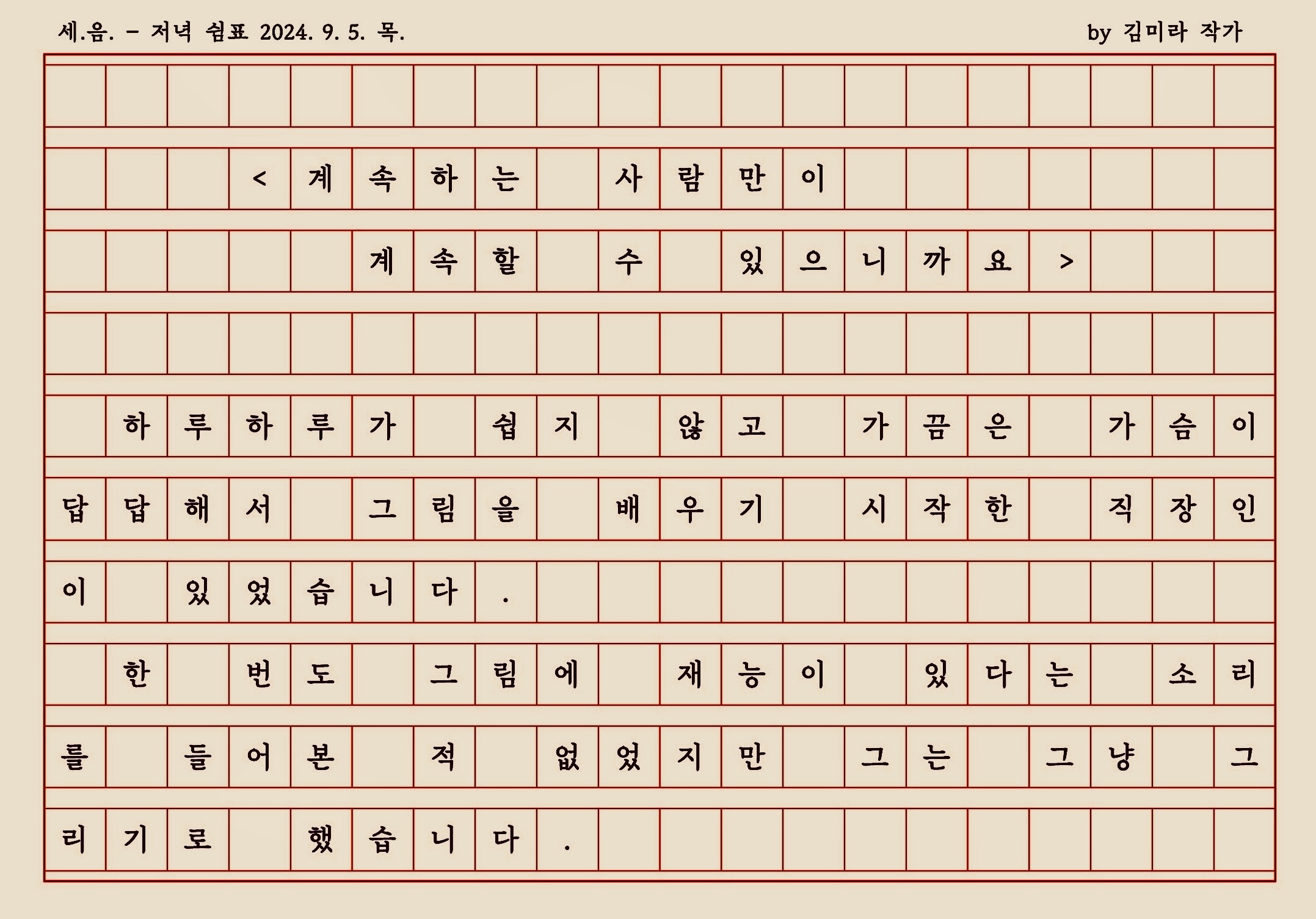 서툴고 힘들어도 계속하다 보면 또 매일매일 하다 보면 어느 순간 훌쩍 성장한 나를 만날 수 있지요.