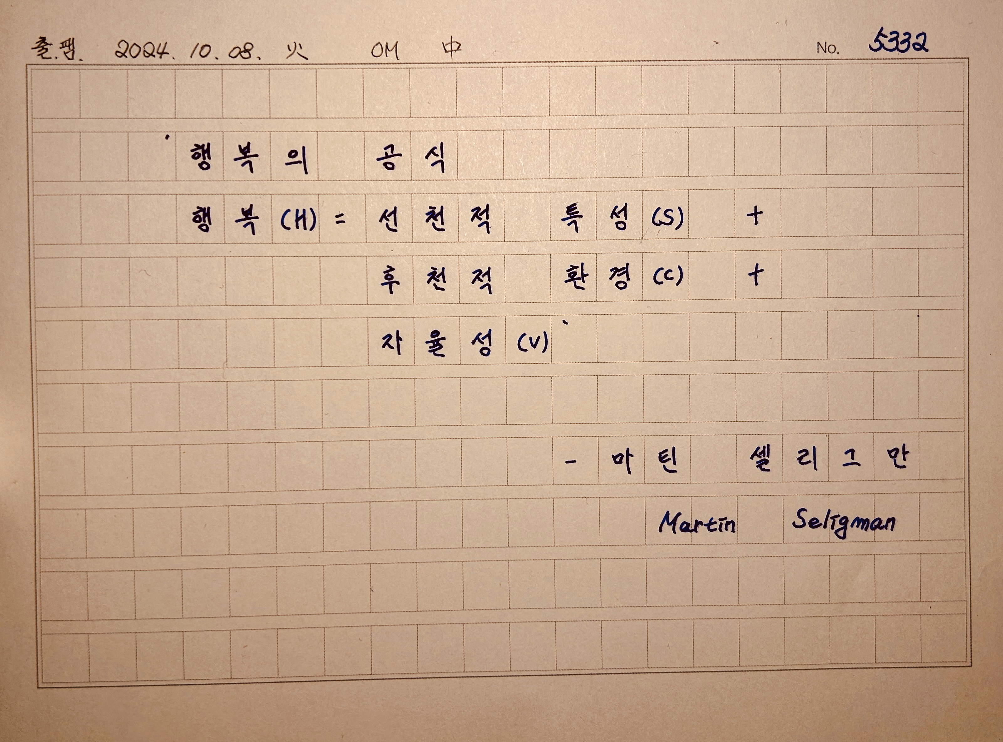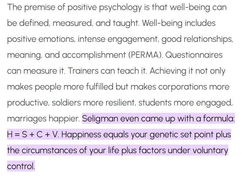 그럴 때 미국 긍정심리학의 아버지 마틴 셀리그만 Martin Seligman 이 창안한 행복의 공식이라는 것에 귀를 기울여 봅니다.