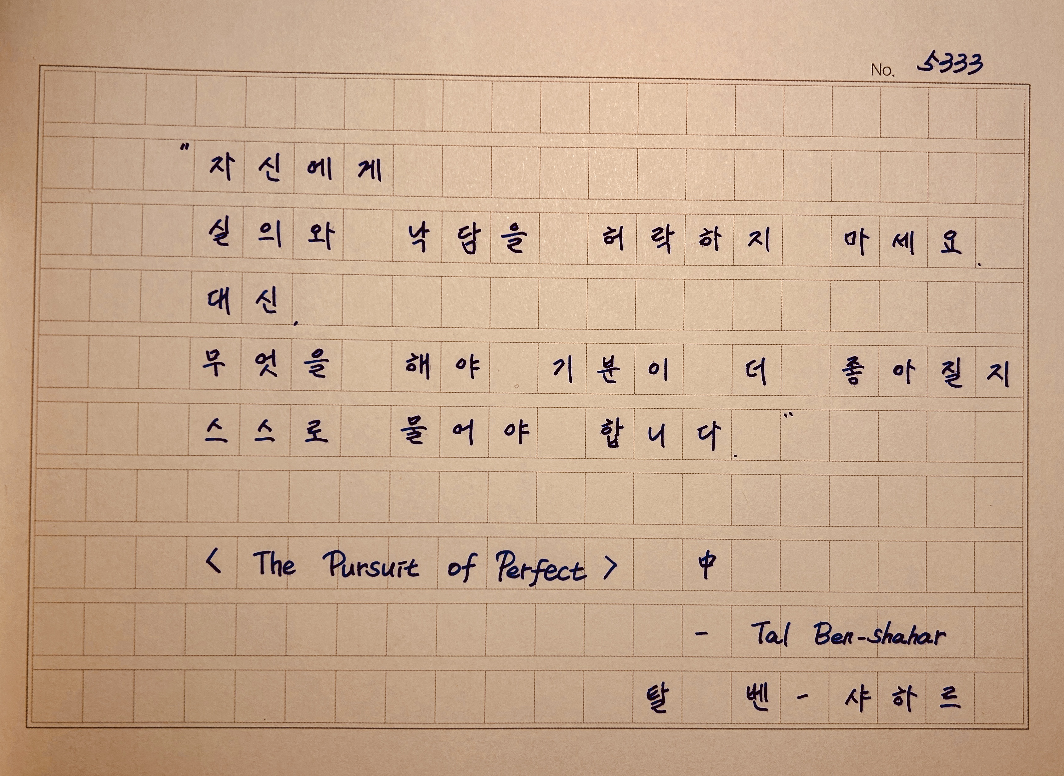 또 한 명의 긍정심리학자 탈 벤-샤하르 Tal Ben-Shahar 는 이런 말을 했습니다.