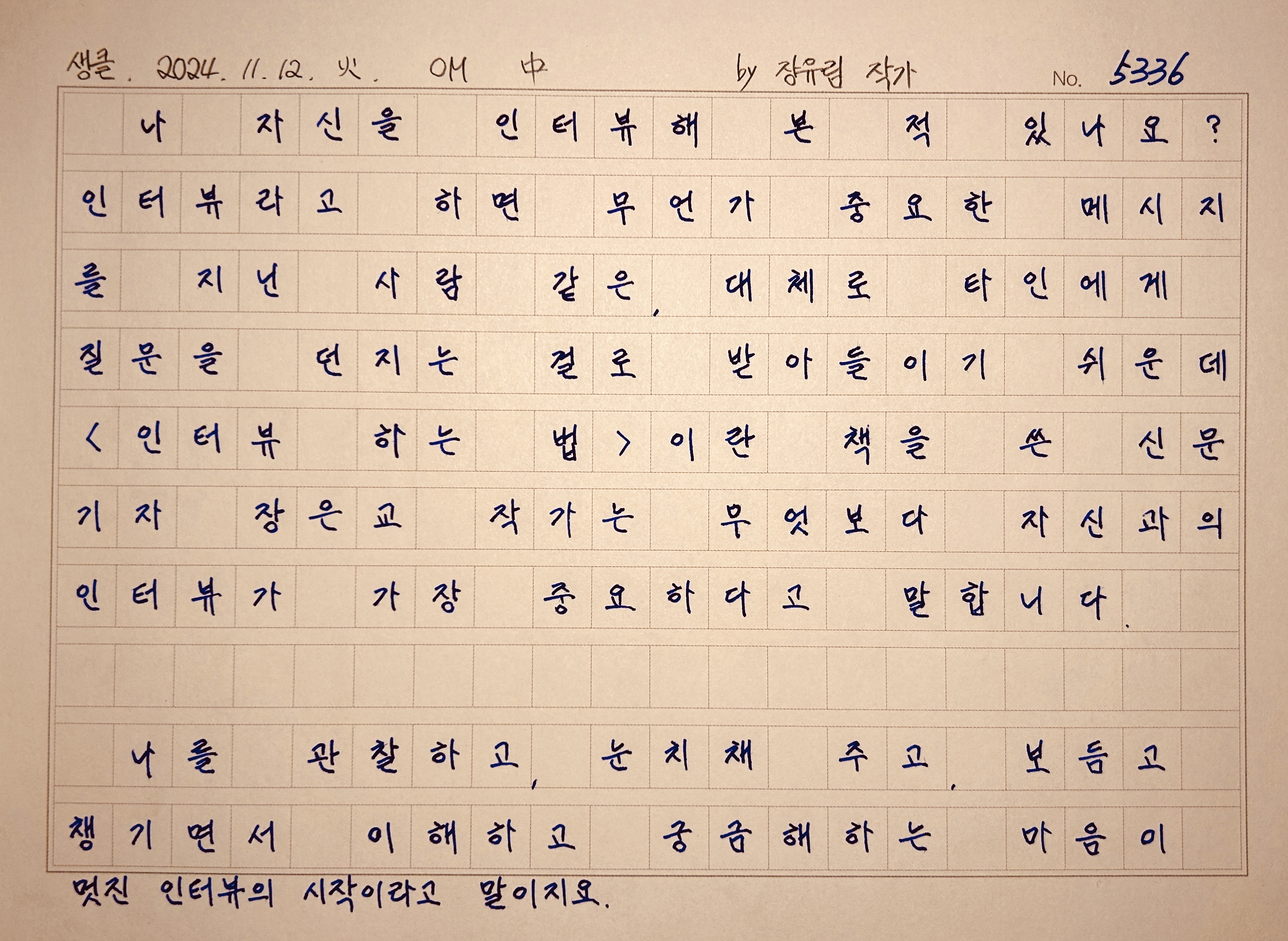 "인터뷰를 어렵게 여기는 사람들에게 작가는 한 가지 쉬운 방법을 권합니다.