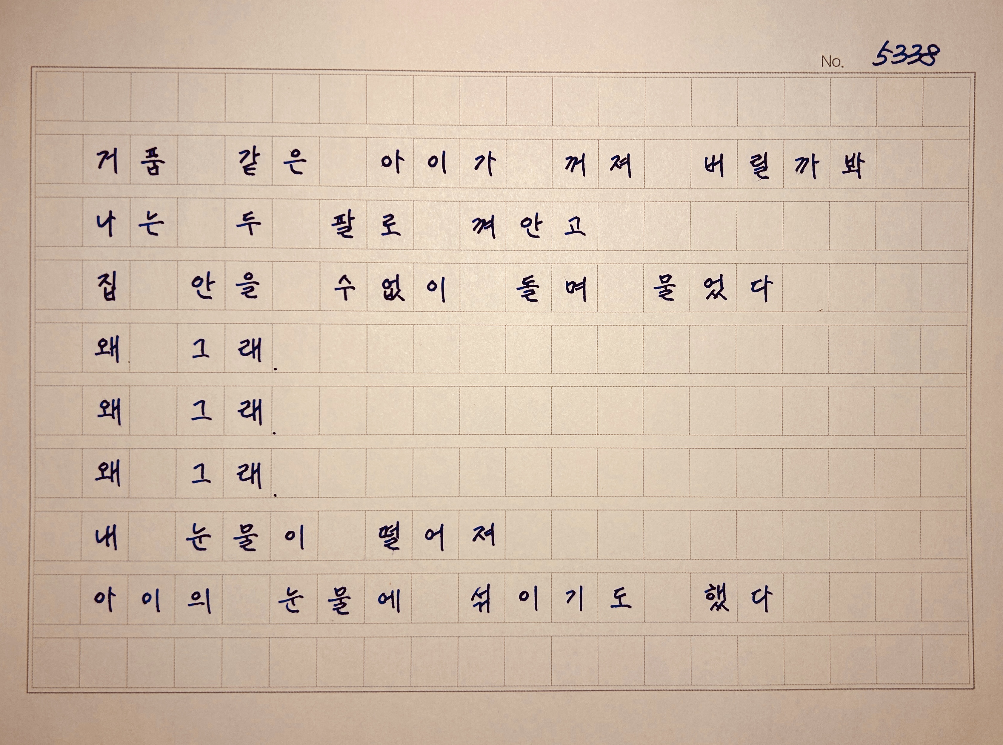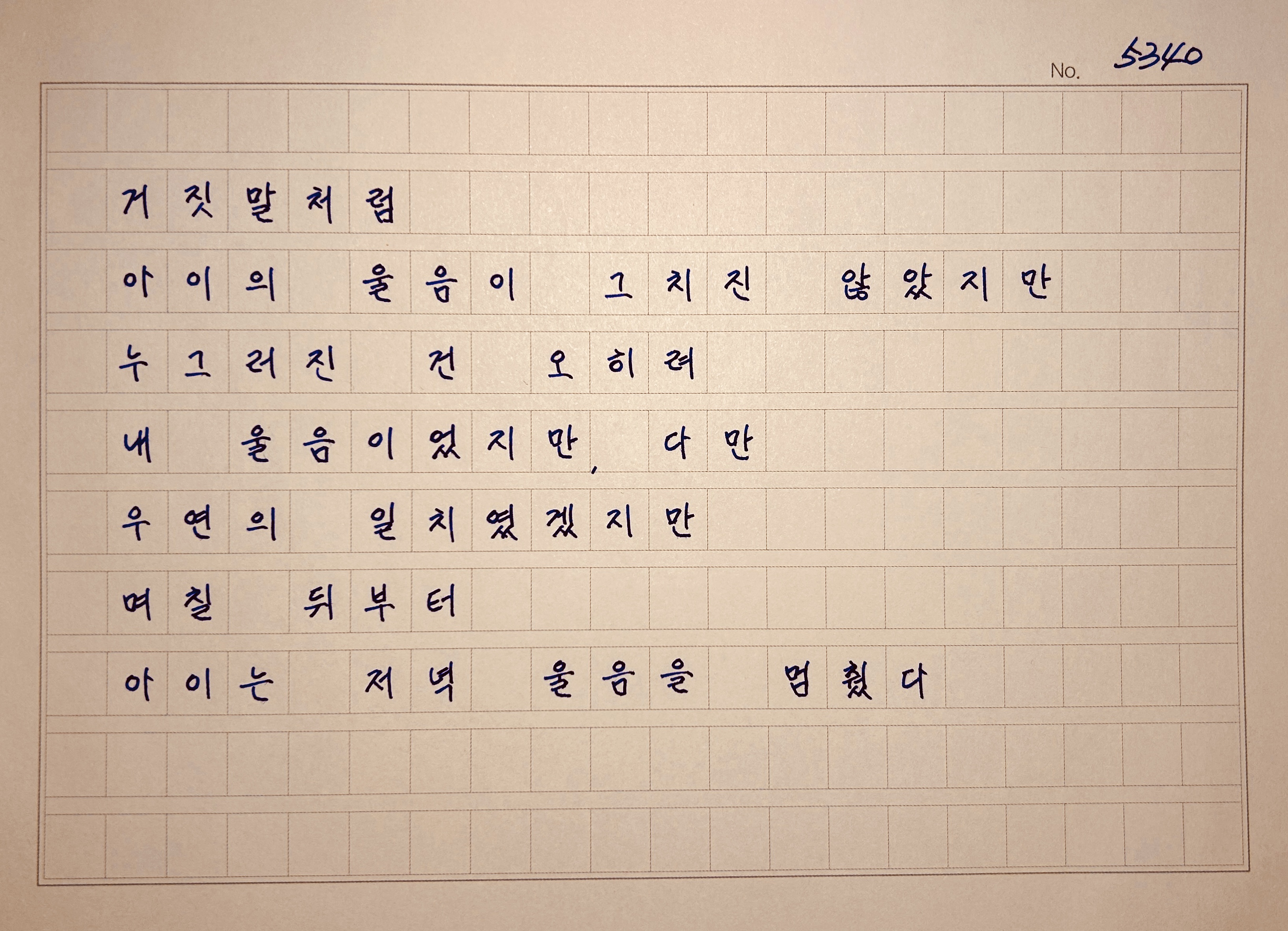 그러자 아이의 울음 대신 그쳤던 건 그 자신의 울음이라고 했습니다.