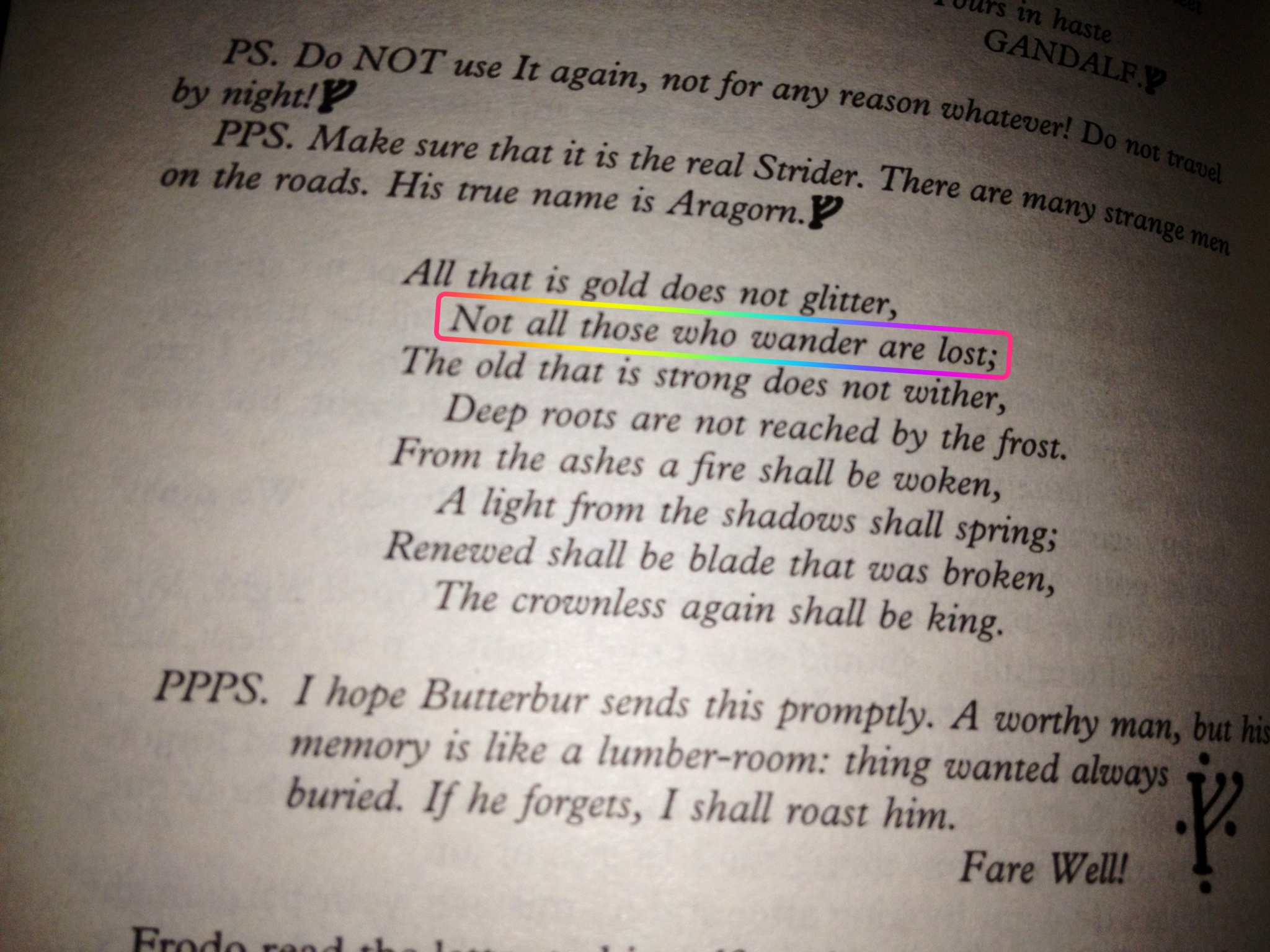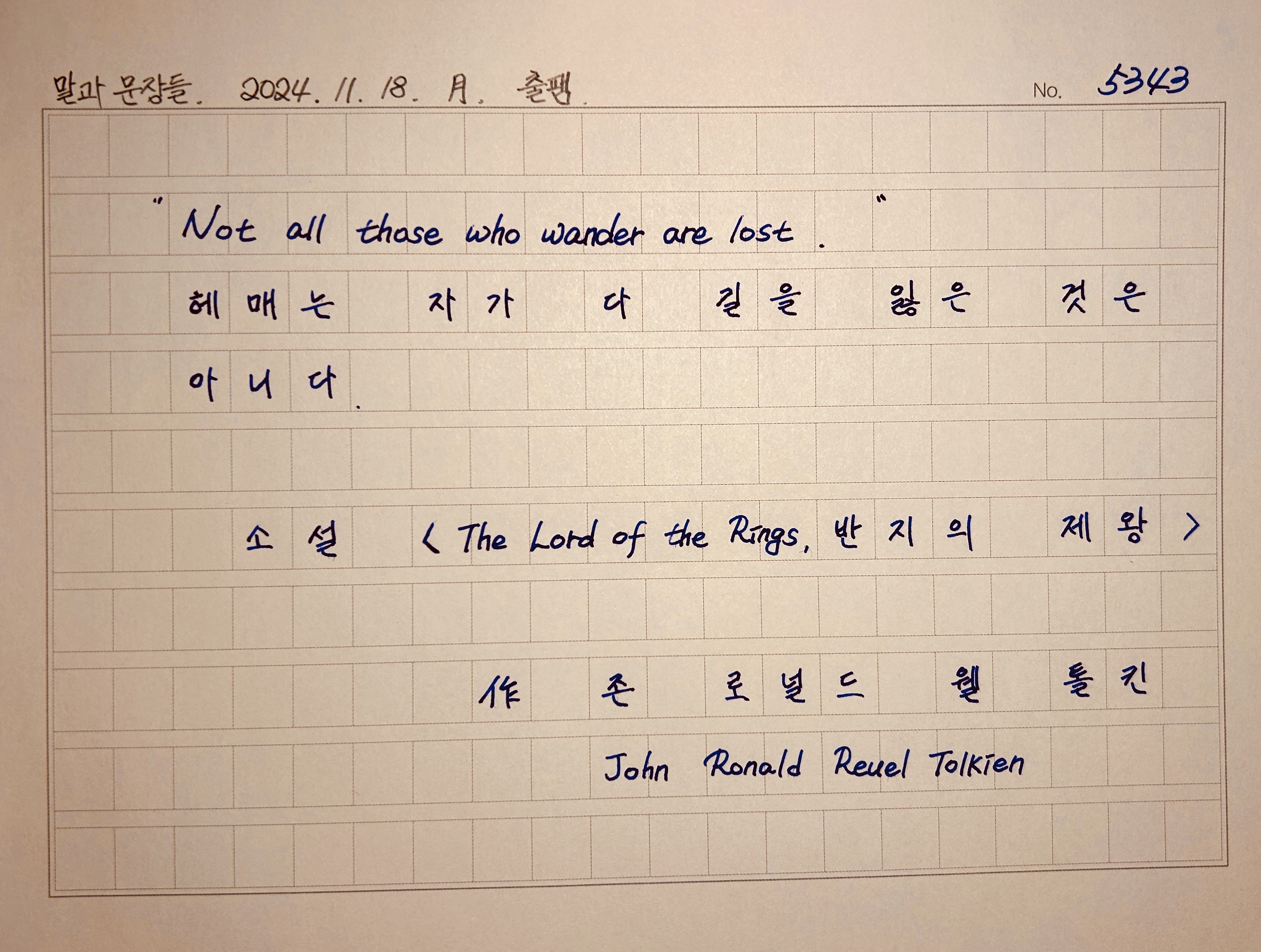 "헤매는 자가 다 길을 잃은 것은 아니다 Not all those who wander are lost"