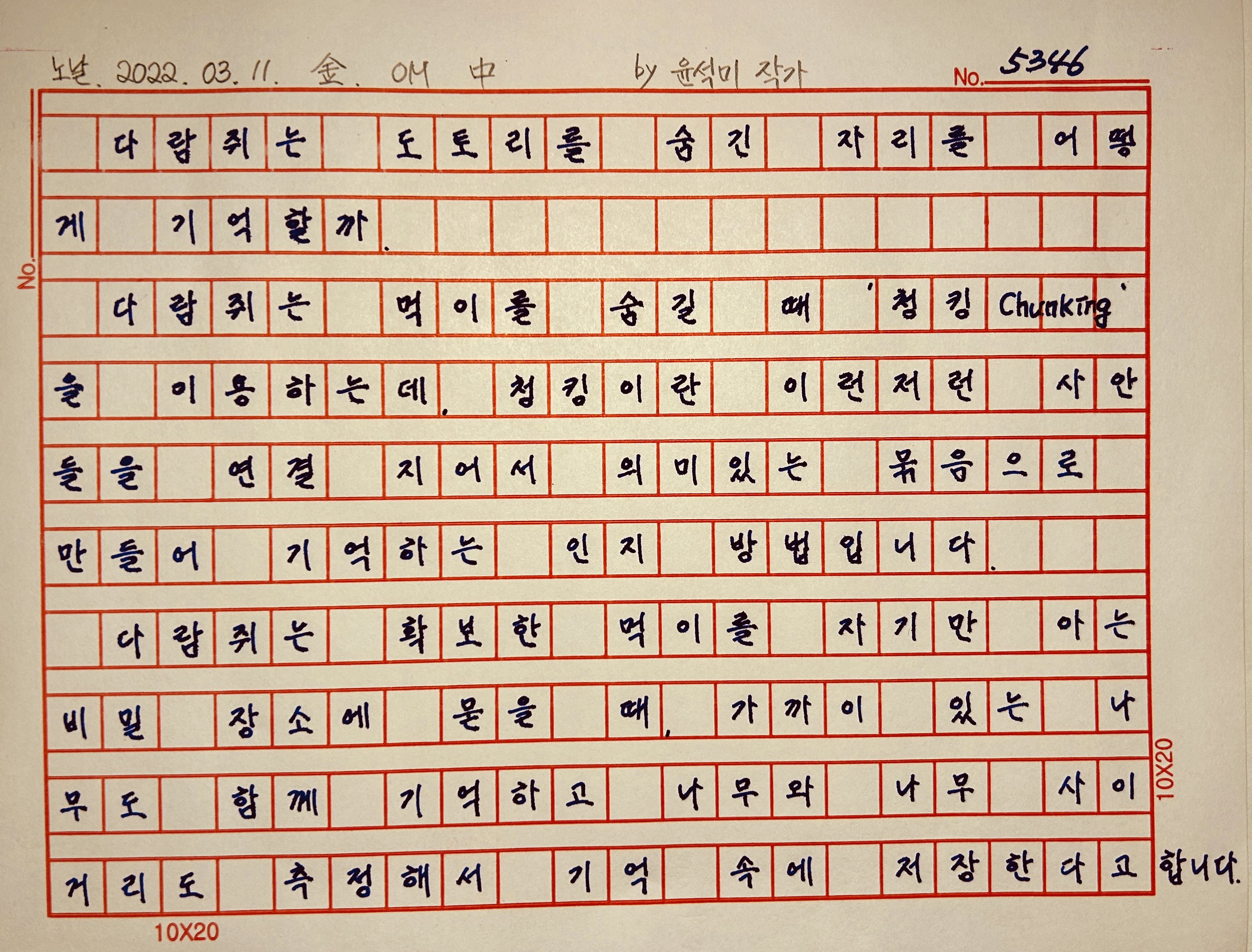 먹이를 한 곳에 저장해 두고 한꺼번에 모아둔 먹이를 도둑 맞는 일은 절대 없지요.