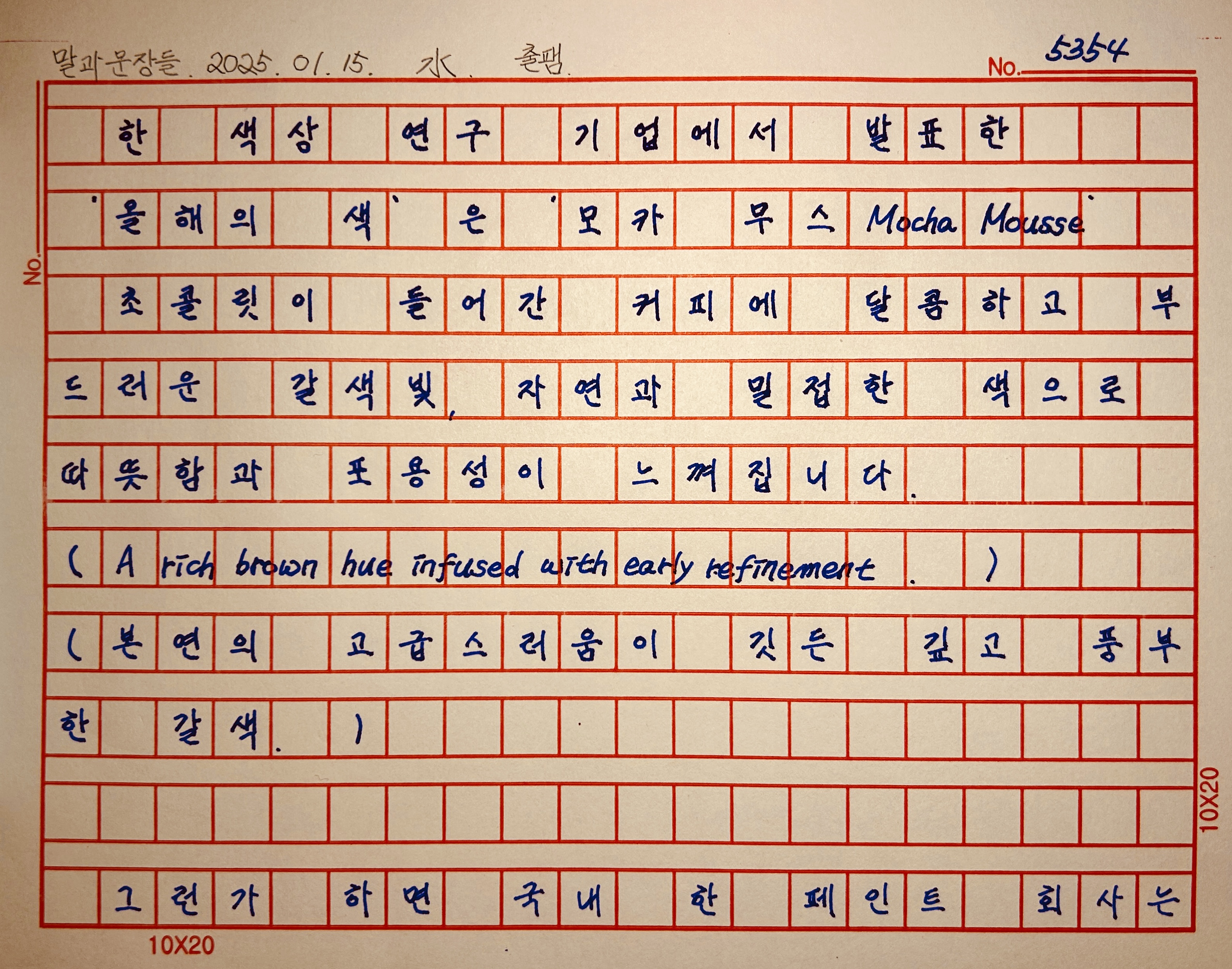 For 2025, the Pantone Color Institute selects PANTONE 17-1230 Mocha Mousse, a warming, brown hue imbued with richness. It nurtures us with its suggestion of the delectable qualities of chocolate and coffee, answering our desire for comfort.