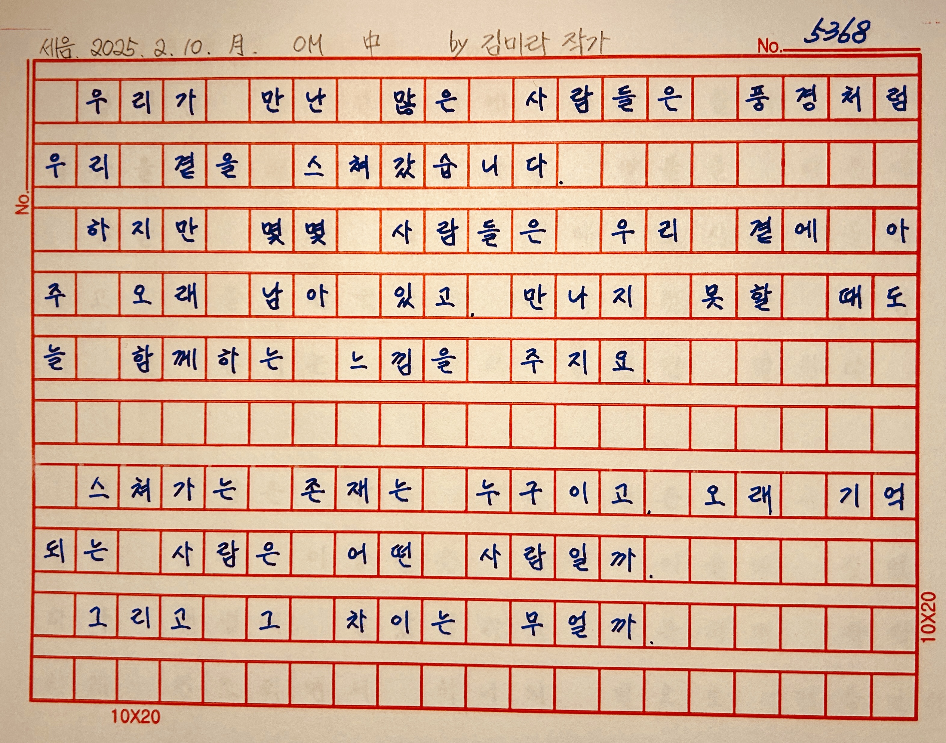 누군가에게 그런 사람이었던 건 아닐까 그런 생각도 해봅니다."