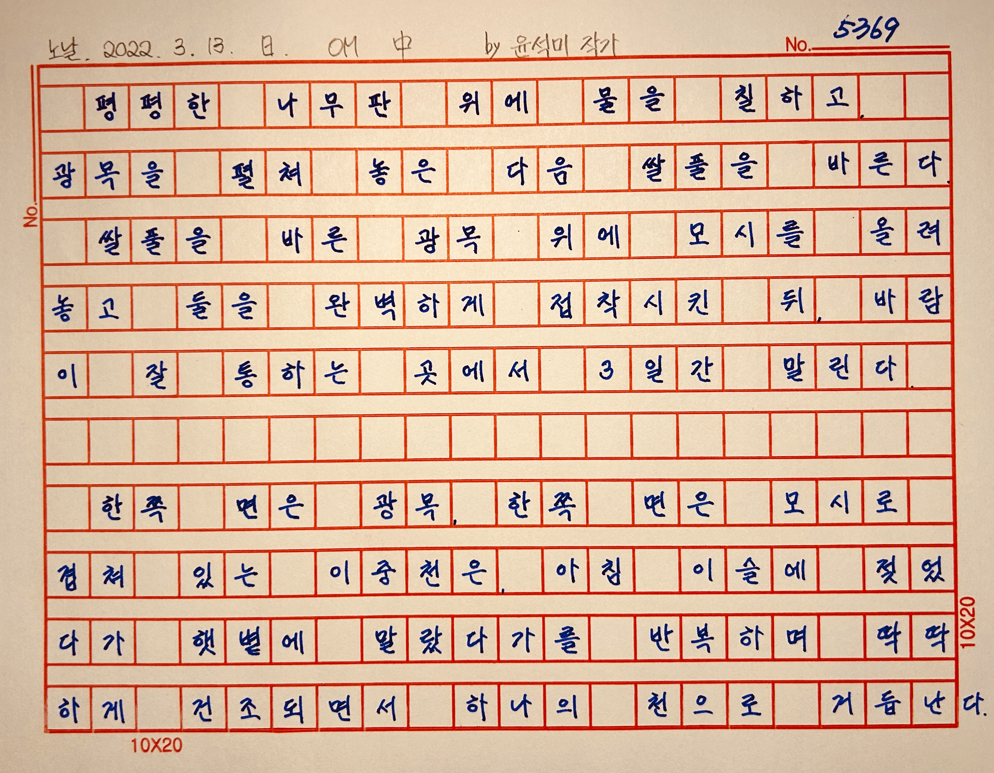 쌀풀로 붙인 광목과 모시를 말리는 바람은 봄바람과 가을 바람이 좋다고 합니다.