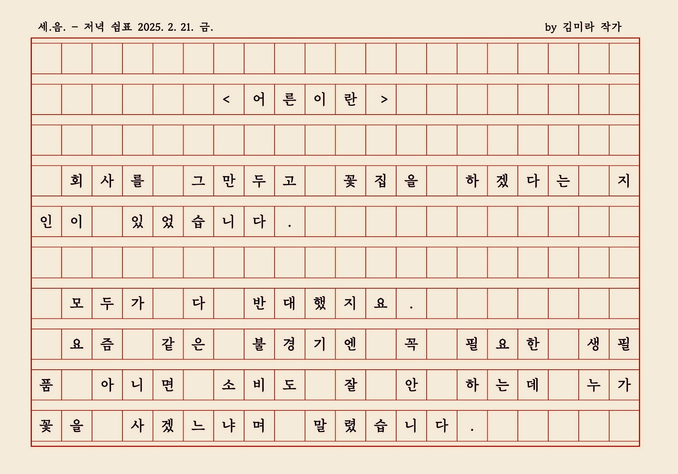 작은 꽃집에서 이렇게 근사한 인생의 장면들이 펼쳐지고 있다는 것도 정말 기쁜 소식입니다.