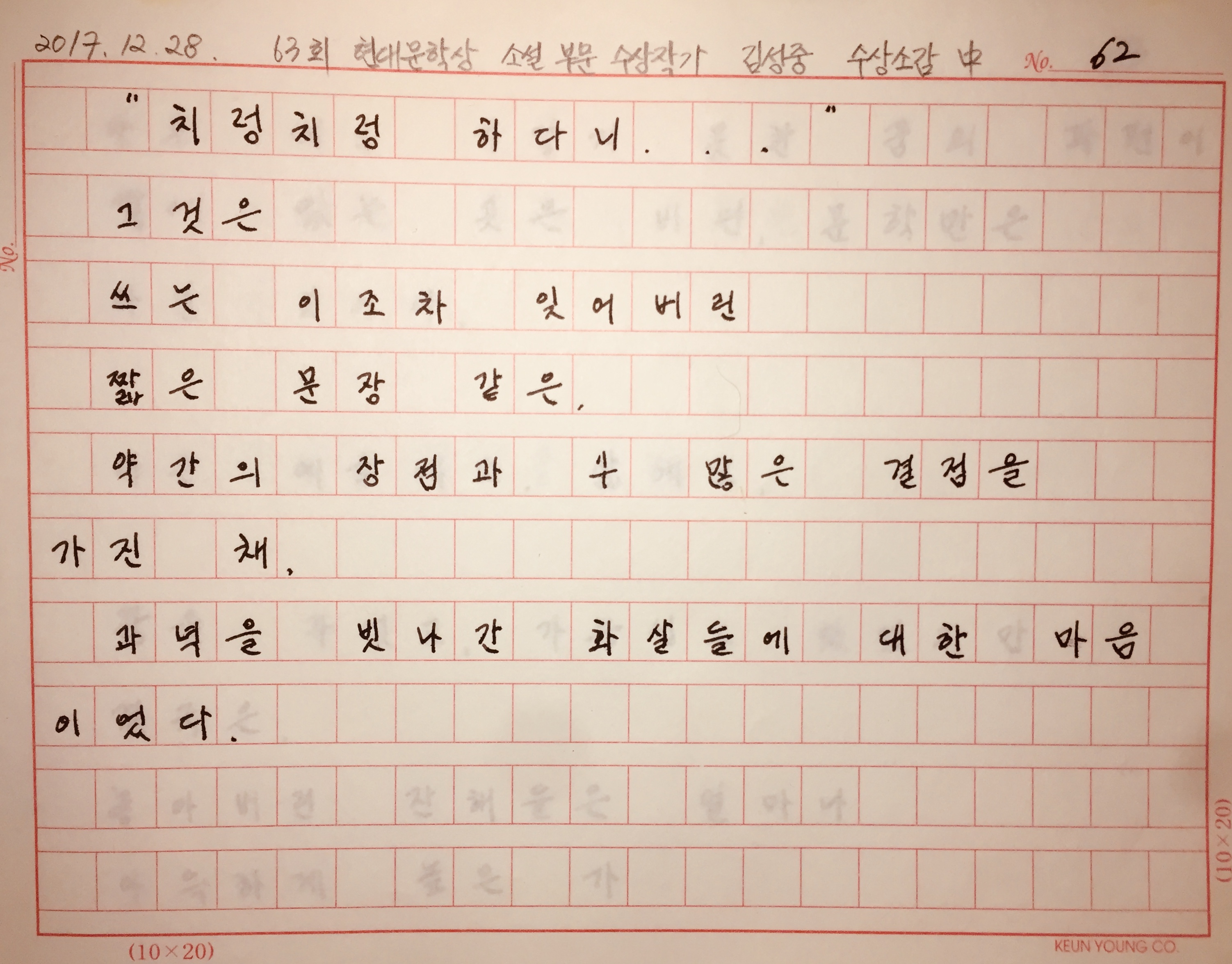 63회 현대문학상 수상작 '상속' 김성중 작가