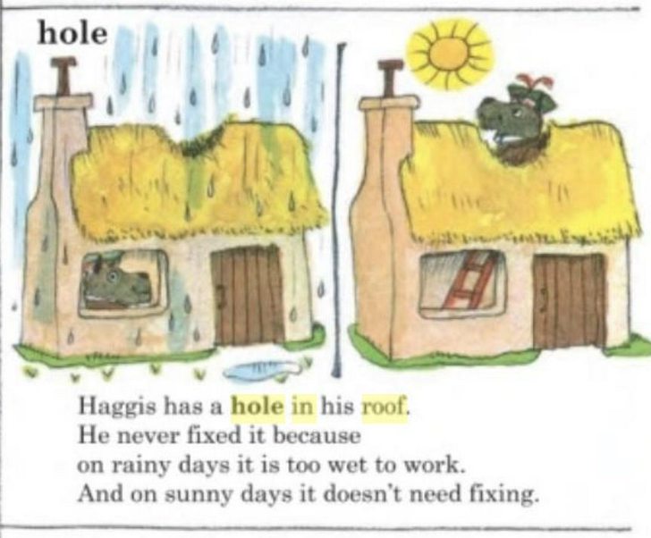 "비가 오는 날은 날이 너무 축축해서 지붕 수리를 할 수 없었고.