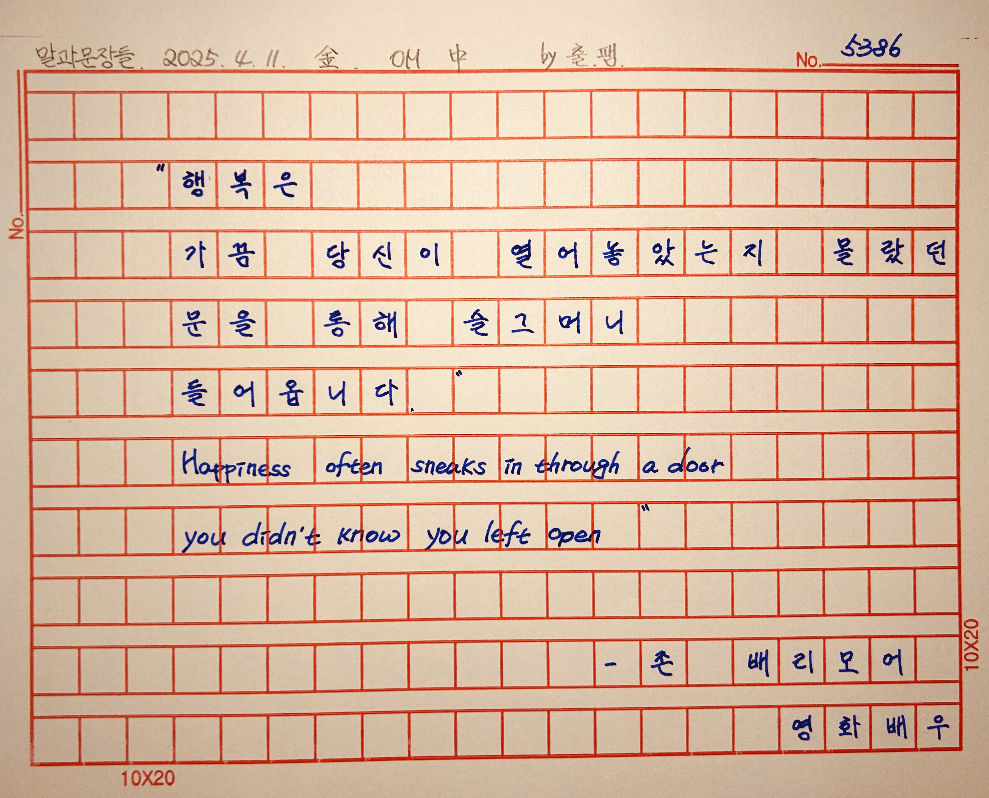 "행복은 가끔 당신이 열어놓았는지 몰랐던 문을 통해 슬그머니 들어옵니다.