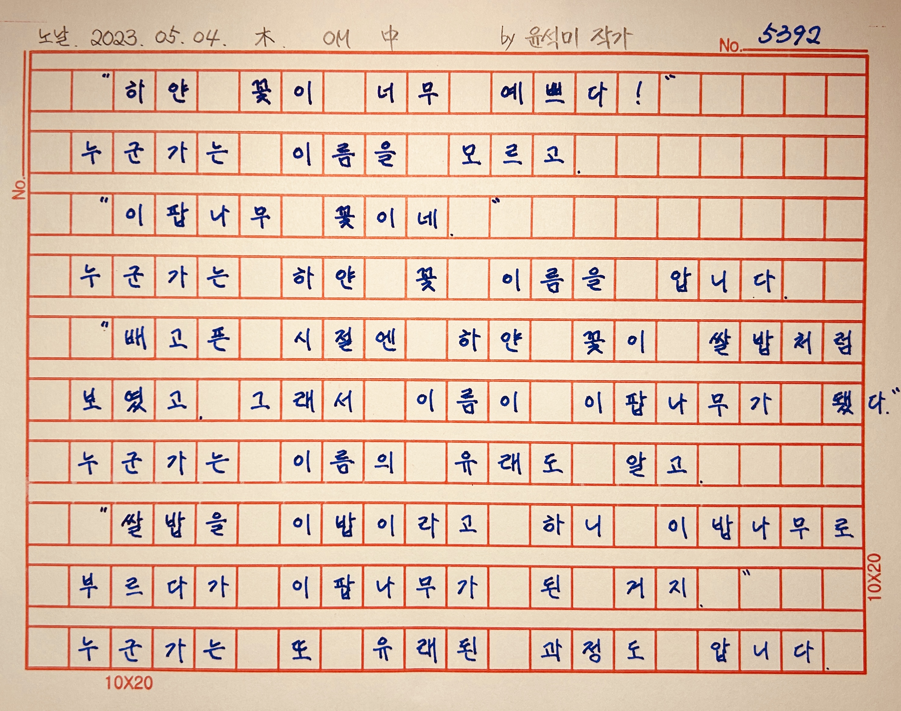 "누군가는 입하 무렵에 핀다고 해서 이팝나무가 됐다는데? 또 다른 설도 압니다.