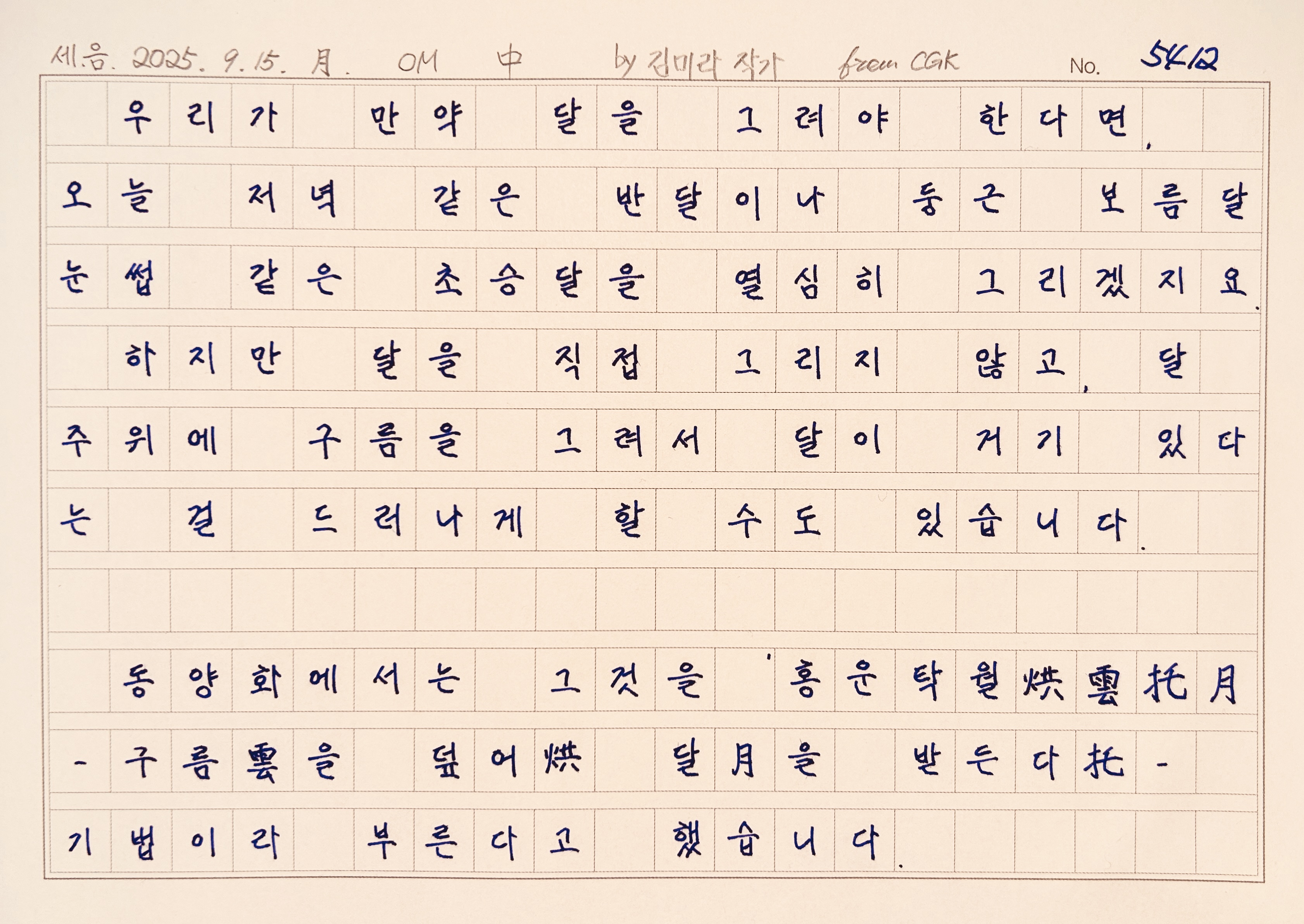 "아마도 내공이 깊어야 달을 그리지 않고도 달을 보여주는 경지에 이르지 않을까.