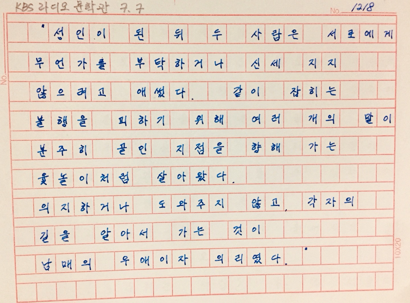 KBS 한민족 방송 라디오 문학관 2019.07.07 일 방송 “한국단편문학특선” 중.