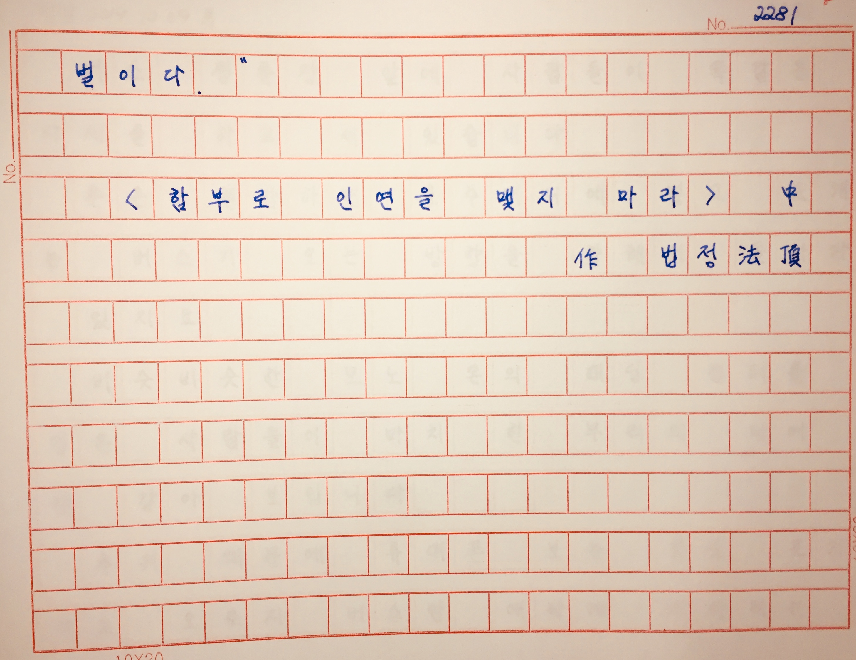 "좋은 인연 덕분에 흔들리는 삶도 잘 견딜 수 있었고.